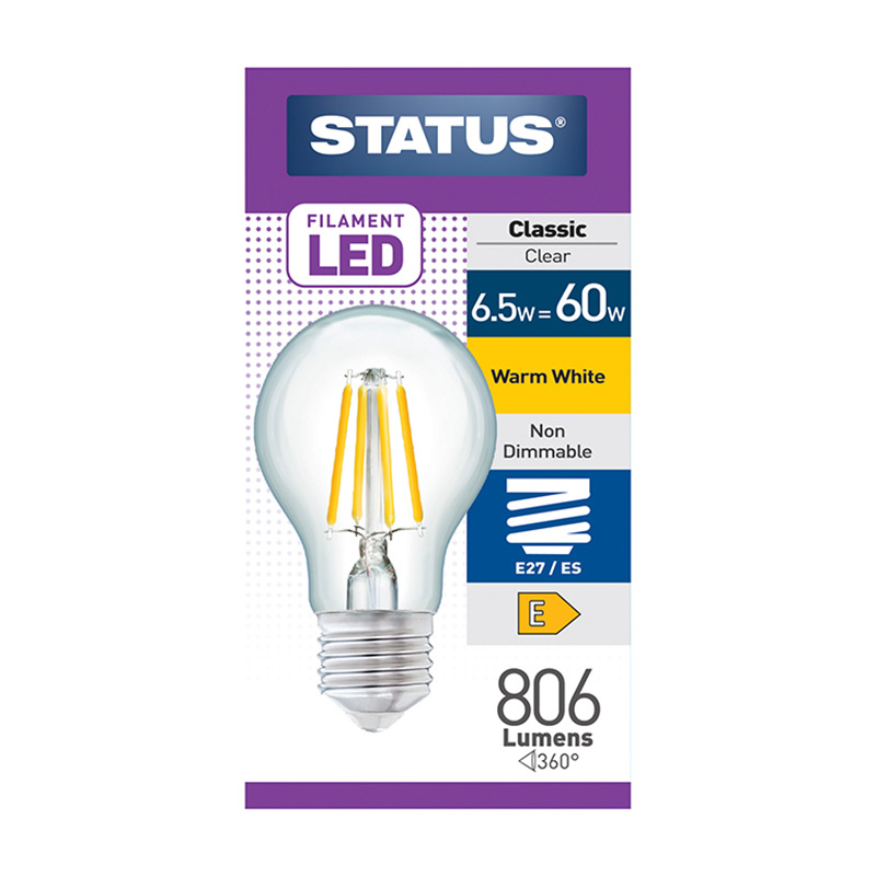 The LED Filament GLS 6.5w ES Status clear bulb combines classic design with modern efficiency. It emits a warm, inviting light while consuming minimal energy. The clear finish enhances its aaesthetic appeal, making it suitable for various settings, from cosy homes to stylish commercial spaces. This bulb is a great choice for those looking to reduce energy costs without sacrificing quality or ambiance.