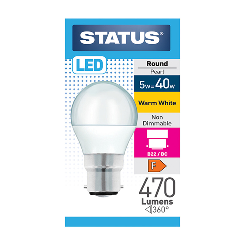 The LED Round Bulb B22/BC 5W in warm white combines practicality and efficiency, making it a great choice for home or commercial lighting. Featuring a bayonet cap (BC) fitting, it’s easy to install and works well with a variety of fixtures, including ceiling lights, wall sconces, and table lamps. Its warm white illumination creates a welcoming and comfortable atmosphere, ideal for living rooms, bedrooms, and workspaces. This 5W bulb is durable and energy-efficient, ensuring long-lasting performance while reducing energy usage. A reliable and stylish lighting option for any space.