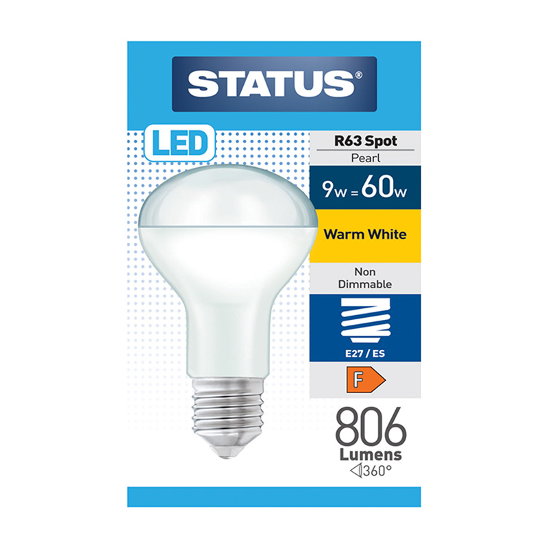 Brighten your space with the Status LED R80 Warm White Reflector Bulb. This 10-watt bulb, featuring an 80mm diametre and an internal silvered reflector, makes an excellent energy-efficient upgrade, using up to 90% less energy than traditional incandescent bulbs. Equivalent to a 60W incandescent, it’s rated for up to 25,000 hours or 12,500 on/off cycles, offering reliable, warm white light at the flick of a switch. The frosted anti-shatter design adds durability, while the 120° medium beam ensures balanced lighting. This non-dimmable E27 Edison Screw (ES) bulb is intended for indoor use only and comes with an F energy rating.