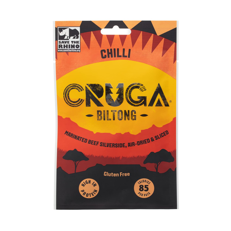 Cruga Beef Chilli Biltong is a flavourful, high-protein snack crafted from premium beef, seasoned with a spicy chili blend for an exciting kick. This dried meat is air-dried to perfection, ensuring a tender texture and rich taste. Ideal for on-the-go snacking, it offers a satisfying combination of protein and bold flavours, making it a delicious and healthy choice for any occasion. Perfect for meat lovers!