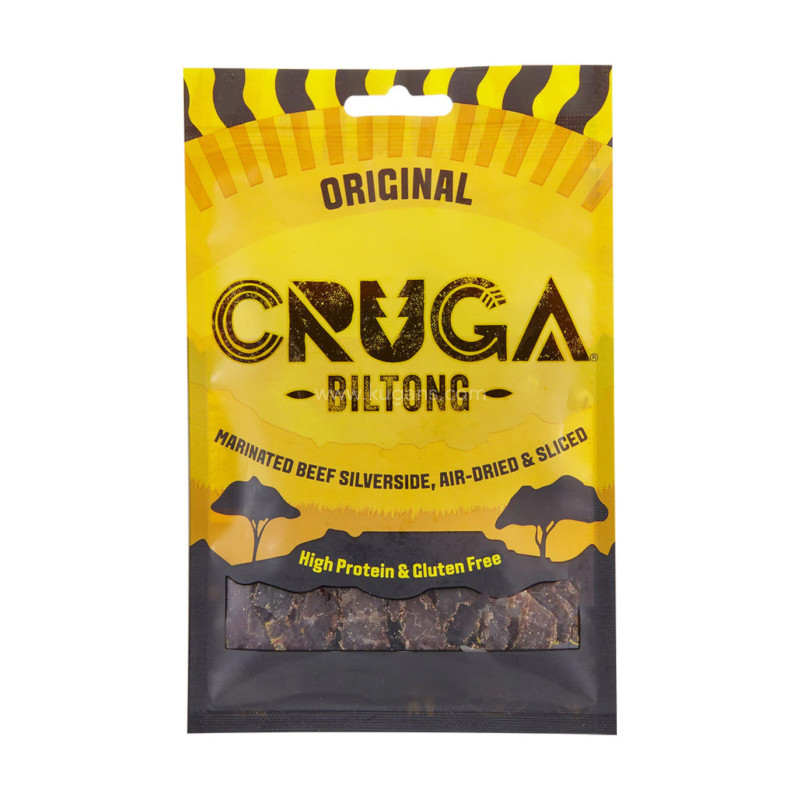 Cruga Beef Original Biltong is a high-protein, low-carb snack made from premium beef, seasoned to perfection, and air-dried for a flavourful, chewy experience. Ideal for on-the-go snacking!