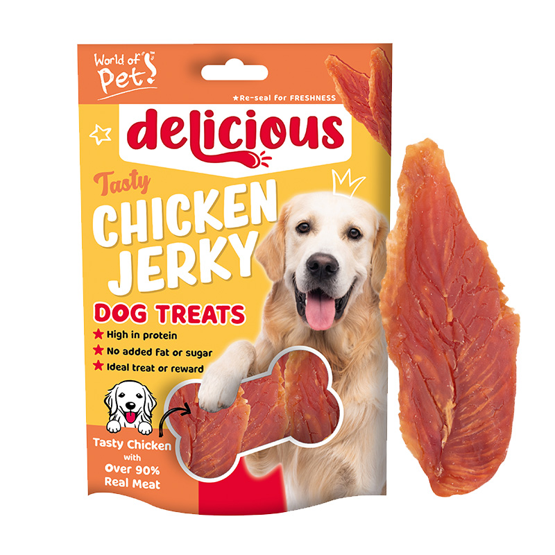 Indulge your furry friend with these delectable chicken jerky dog treats. Made from high-quality chicken, they offer a savoury flavour that dogs love. Perfect for training or as a reward, these treats are not only tasty but also provide a satisfying crunch. Packed with protein, they support your dog’s health and happiness. Treat your pet to a snack they’ll wag their tail for!