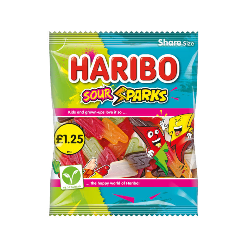 Haribo Sour Sparks offers a delightful mix of tangy and sweet gummy candies that burst with flavour. Perfect for a quick treat or sharing with friends, these chewy sweets deliver a satisfying sour kick followed by a deliciously sweet finish. Ideal for parties, movie nights, or simply indulging your sweet tooth, they provide a fun and flavourful snacking experience that candy lovers will enjoy.