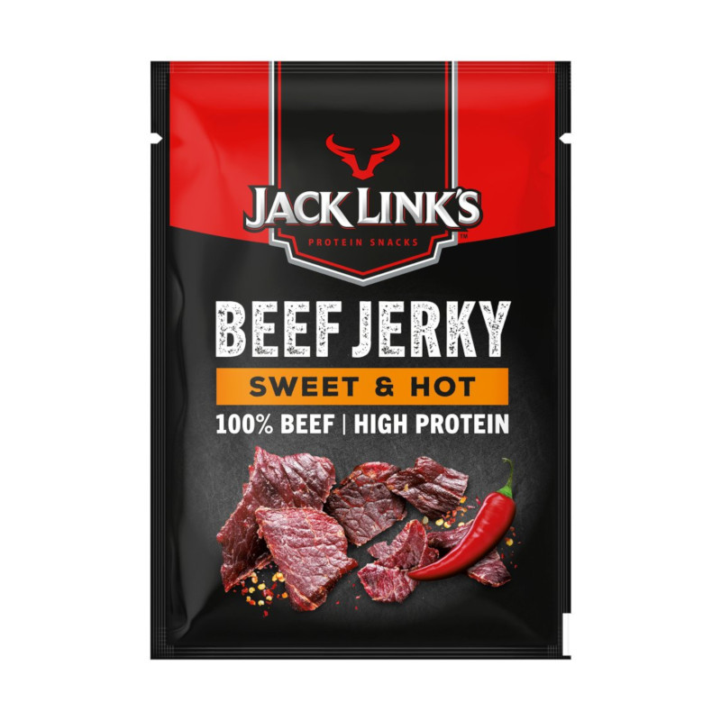 Jack Link's Sweet & Hot Beef Jerky offers a delicious blend of sweet and spicy flavours, perfect for snacking. Enjoy its tender texture and satisfying taste anytime, anywhere!