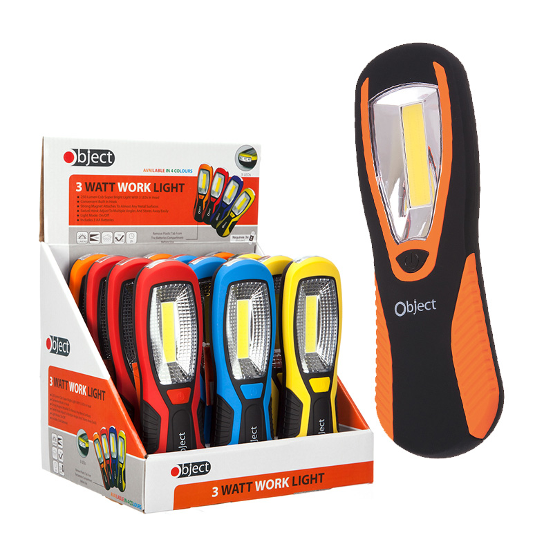 The COB 3W Work light is a compact and portable lighting solution designed for convenience and durability. It features a powerful COB LED for bright illumination, making it ideal for various tasks such as camping, repairs, or emergency use. With its lightweight design and built-in magnet, it’s easy to carry and position wherever needed. The work light offers multiple brightness settings, ensuring you have the right light for any situation. Batteries included.