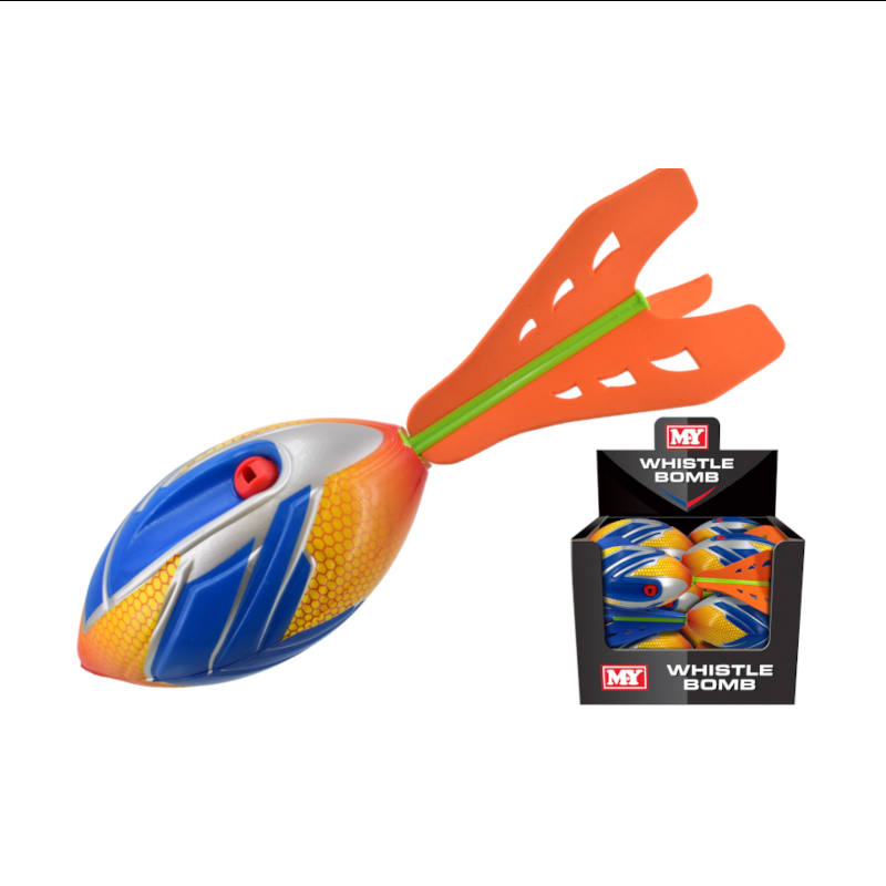 The Whistle Bomb emits a loud whistle when thrown adding excitement to any park walk.