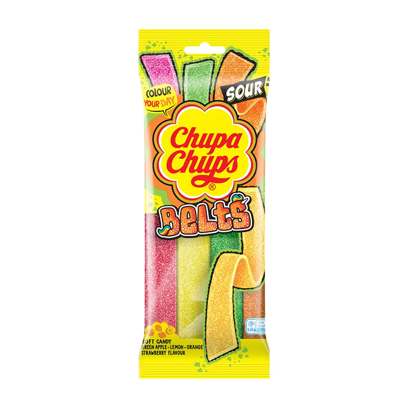 Experience the tangy thrill of Chupa Chups Mix Sour Belts. This 90g pack features chewy strips in a variety of sour flavours for a fruity, sour snack experience.