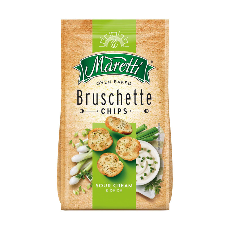 Maretti Bruschette in Sour Cream & Onion flavour offers a delightful crunch and savoury taste, perfect for snacking or as a topping. Enjoy a flavourful experience with every bite!