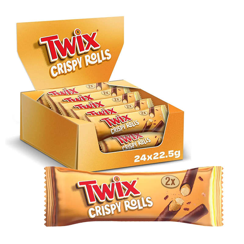 Indulge in the delightful crunch of our Twix Crispy Rolls, each 22.5g of pure chocolatey bliss. These irresistible treats combine a crispy wafer with a creamy caramel centre, all enveloped in smooth milk chocolate. Perfect for sharing or enjoying on your own, they’re the ideal snack for any occasion. Treat yourself today!