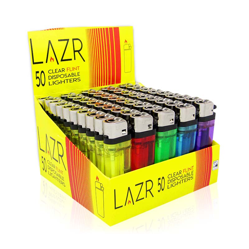 LAZR Clear Flint Disposable Lighters are a convenient and reliable solution for your lighting needs. Featuring a sleek, transparent design, these lighters allow you to easily see the fuel level. Each lighter is equipped with a flint mechanism for a dependable flame and is suitable for various uses, whether for lighting candles, starting a grill, or other everyday tasks. Lightweight and portable, they are perfect for on-the-go situations.