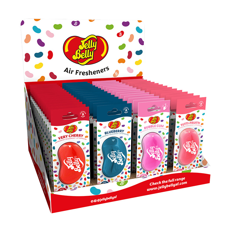 Jelly Belly, famous for their fun and fruity jelly beans, decided to take their popular flavours in a new direction with air fresheners. Now you can enjoy those same sweet scents, not just as a treat. This counter display stands holds 56 air fresheners of a mixed assortment.
