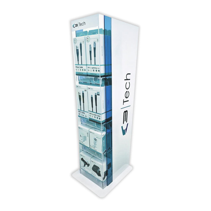 This Vibe C3 Counter Display Unit is a compact, static stand fully stocked with 96 high quality mobile accessories from the trusted Vibe range. Designed for countertops, it showcases a neat selection of best-sellers including charging cables, power adapters, and in car tech, all attractively packaged and pre merchandised. With a clean, professional look and clear side branding, this display is built to boost visibility and drive impulse purchases without taking up much space. A hassle free retail solution for convenience stores, gadget shops and more.
