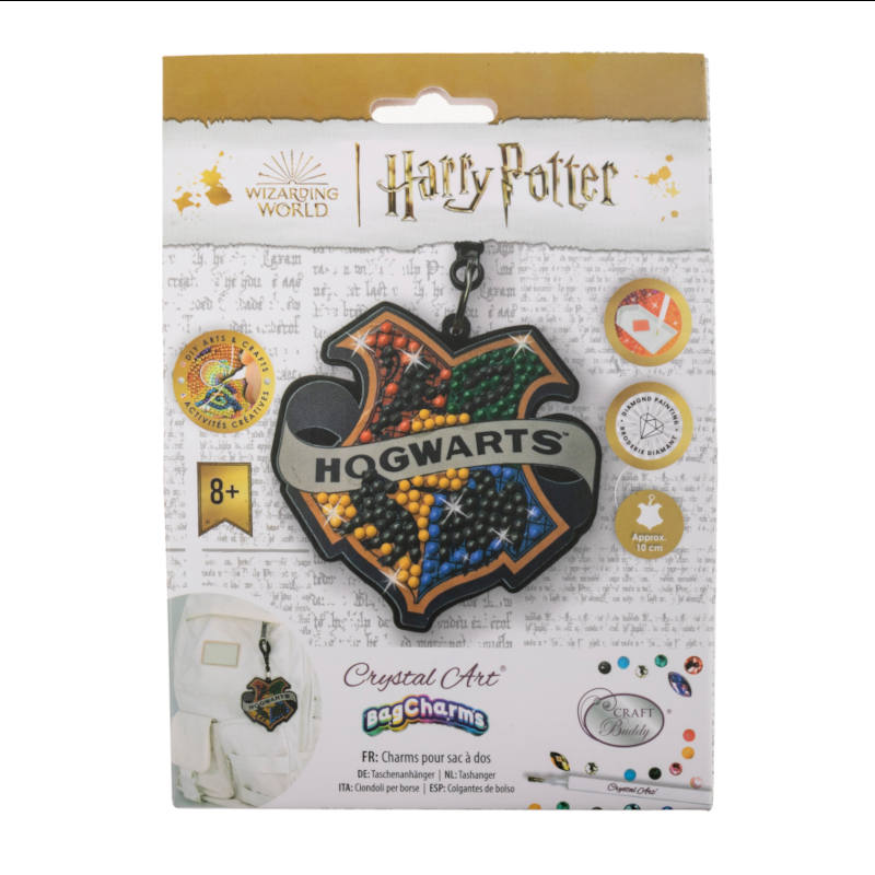 Craft Buddies Crystal Art Bag Charm features a vibrant Hogwarts badge design, perfect for adding a touch of magic to your accessories. Ideal for fans of the wizarding world!