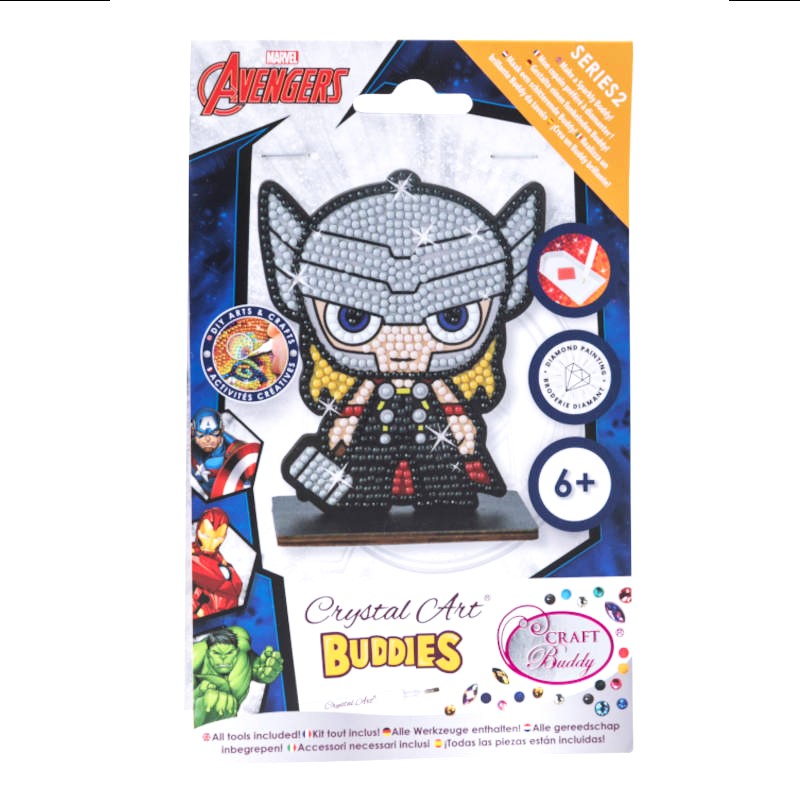 Craft Buddies Crystal Art Buddy – Thor features a charming design inspired by the Norse god of thunder. This creative kit allows you to embellish Thor with vibrant crystals, adding a touch of sparkle to your crafts. Perfect for art enthusiasts and fans of mythology, this fun activity promotes creativity and fine motor skills. Enjoy bringing this iconic character to life while creating a stunning piece of art!