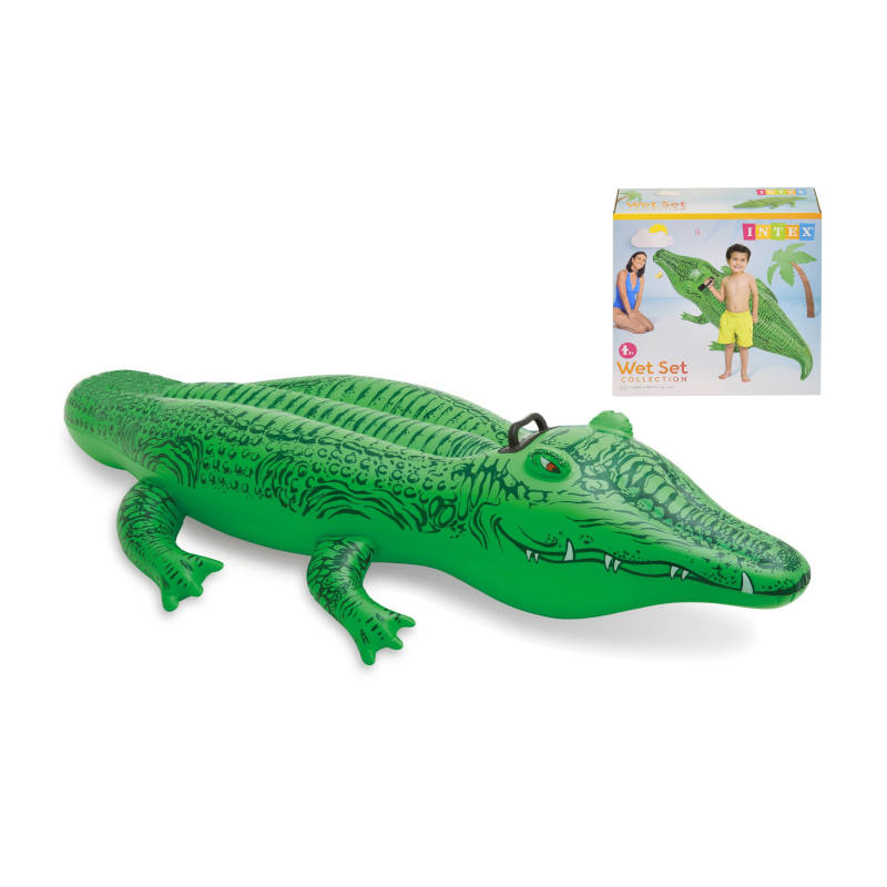 Introducing the Crocodile Ride-On Inflatable from Intex, perfect for summer fun! This vibrant green inflatable measures 66 x 34 inches, providing ample space for kids (Ages 3+) to lounge or play. Designed for stability and comfort, it features sturdy handles for safe riding. Ideal for pools, lakes, or beach adventures, this crocodile-themed inflatable will surely be a hit with young water enthusiasts. Get ready for hours of splashing enjoyment!