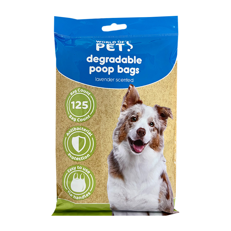 The World of Pets Antibacterial Degradable Dog Bags are designed for responsible pet owners who care about cleanliness and the environment. These bags are not only strong and durable for effective waste disposal but also feature antibacterial properties to keep you safe during clean-up. Made from degradable materials, they contribute to a cleaner planet, making them a smart choice for eco-conscious pet lovers. Each pack holds 125 bags and has a built in easy dispenser hole on the back of each pack.