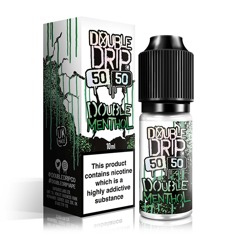 Double Drip 50/50 Double Menthol offers a refreshing, icy blend with a smooth throat hit. Perfect for menthol lovers seeking a cool, invigorating vaping experience.