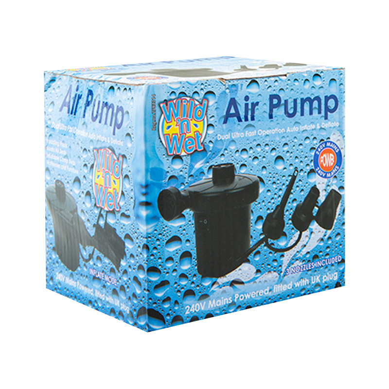 This Electric Pump for Inflatables is a powerful 240v device designed for quick and efficient inflation and deflation of various inflatables. Its compact design makes it easy to transport and store, while the user-friendly operation ensures convenience. Ideal for use with air mattresses, pool toys, and more, this pump delivers reliable performance for all your inflatable needs, making setup and take down a breeze.