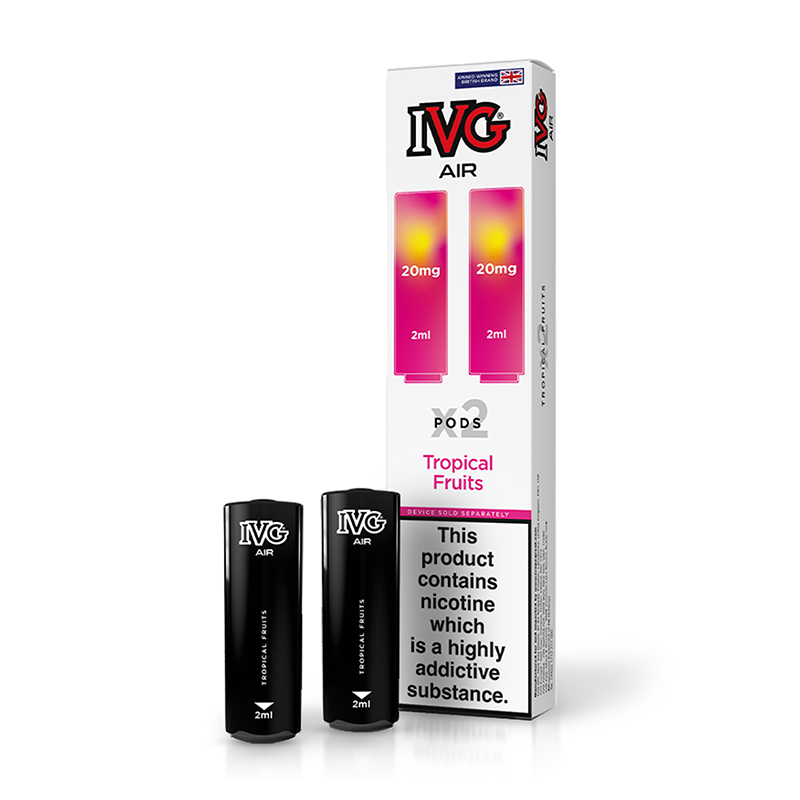 Experience a burst of tropical flavours with IVG Air Pods Tropical Fruits. This twin pack offers 2ml of refreshing, fruity vape goodness - perfect for on-the-go enjoyment!