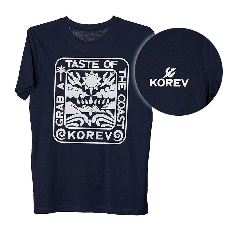 Grab a taste of the coast and take it wherever you go with the ‘Open Horizons’ T-Shirt in navy—a limited edition collaboration between Korev and Cornwall-based artist Clara Jonas. Inspired by the sea and a life lived outdoors, Clara’s design celebrates our deep connection with the coast and our commitment to a more sustainable future.
