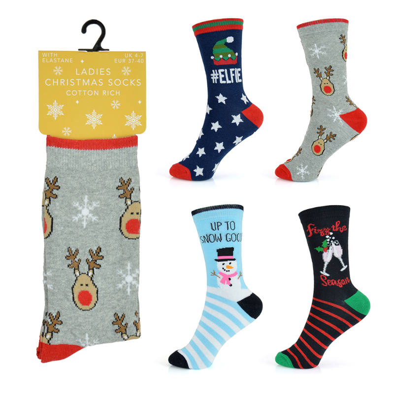 These festive Women’s Christmas socks are perfect for adding a touch of holiday cheer to your wardrobe. Designed to fit UK shoe sizes 4-7, they feature fun and seasonal patterns that celebrate the spirit of Christmas. Made from soft, cosy materials, they ensure comfort and warmth during the chilly winter months. Ideal for gifting or treating yourself, these socks make a cheeky addition to any holiday outfit.