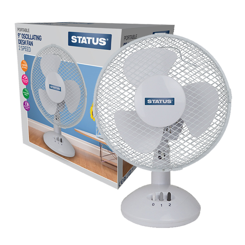 Introducing the Fan Desk 9-inch, a stylish and compact desk fan perfect for personal use. With a sleek design, it easily fits on desks, bedside tables, or shelves. Its quiet operation ensures minimal disruption, making it ideal for work or relaxation. The adjustable tilt allows for customisable airflow, while the energy-efficient motor provides reliable cooling. Stay comfortable and refreshed with this essential accessory for any space.