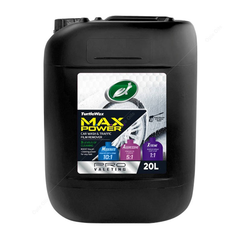 Turtle Wax Max Power Traffic Film Remover is a powerful cleaning solution designed to effectively eliminate road grime, dirt, and contaminants from vehicles. Packaged in a convenient 20 litre container, it’s ideal for professional detailing and car washes. Its advanced formula ensures a streak-free finish while protecting surfaces, making it a go-to choice for maintaining a clean and polished appearance. Perfect for heavy-duty cleaning tasks. Perfect for commercial car washes.