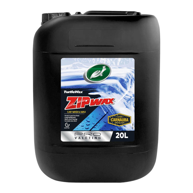 Turtle Wax Zip Wax Pro Wash & Wax is a 20 litre car care solution for businesses that cleans and waxes in one step, providing a brilliant shine and protective layer while saving time and effort.