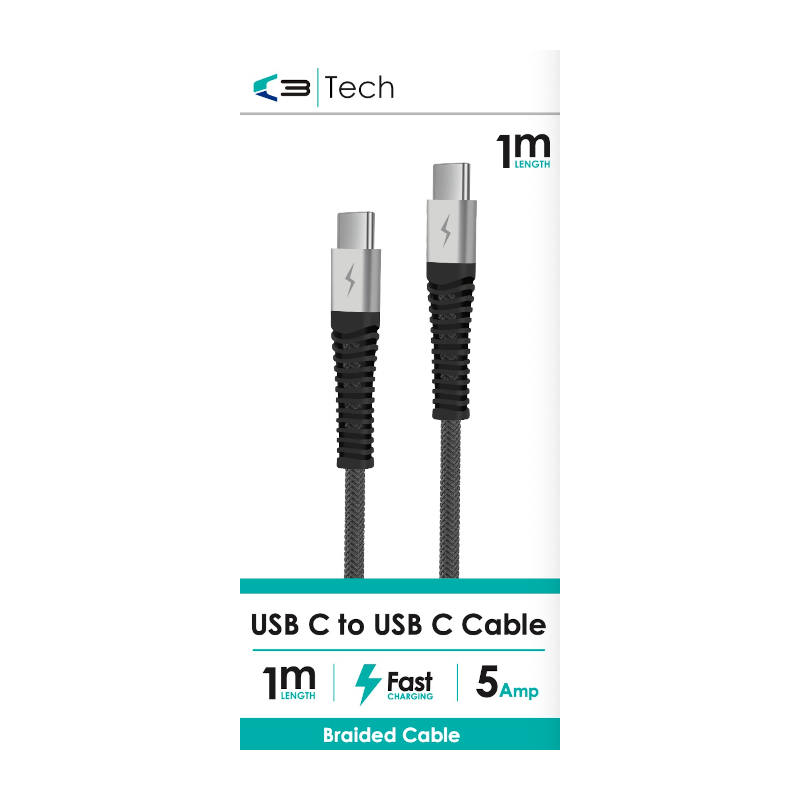 The Vibe Braided USB Type C to Type C cable is a 1 metre long accessory designed for fast data transfer and charging. Its durable braided exterior ensures resistance to wear and tear, while the Type C connectors provide universality and compatibility with a range of devices. Ideal for smartphones, tablets, and laptops, this cable combines style with functionality, making it a reliable choice for everyday use.