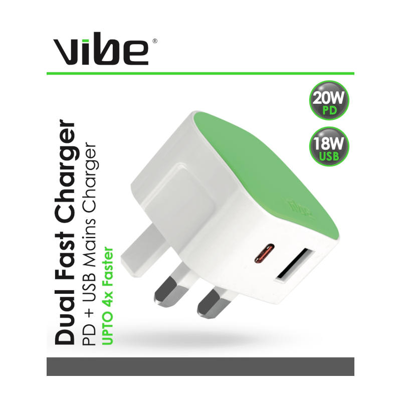 Vibe Mains Charger to dual PD and USB is a compact and efficient charging solution designed for various devices. It features multiple USB ports for simultaneous charging, ensuring quick power delivery. With its universal compatibility, it works seamlessly with smartphones, tablets, and other USB-powered gadgets. The sleek design makes it ideal for home or travel use, while built-in safety features protect against overcharging and short circuits, providing peace of mind during use.